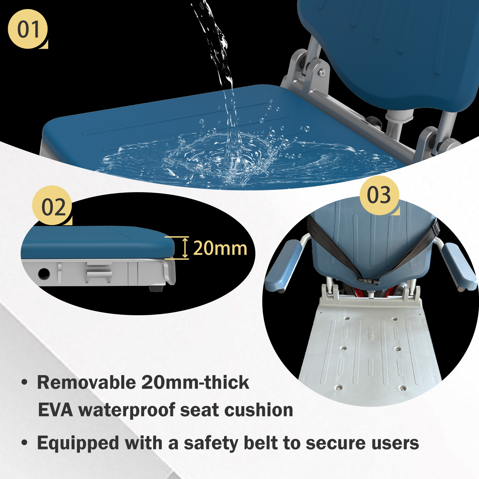 Pour garantir une fiabilité à long terme et de faibles coûts de maintenance, Heins Medical intègre un concept de soins pratique dans le HES-L609. Le cadre en aluminium résistant à la corrosion ne nécessite qu'un simple essuyage pour être propre, tandis que le Coussin de siège en EVA imperméable de 20 mm est amovible, lavable et sèche rapidement.
